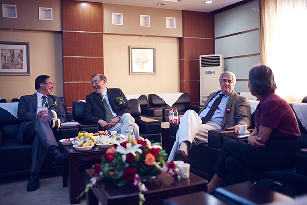 会间小憩,大咖们愉快畅谈,从左至右分别为:陈甫州教授,George Yung-hsing Wu教授,Edward H. Livingston教授和Wu教授夫人